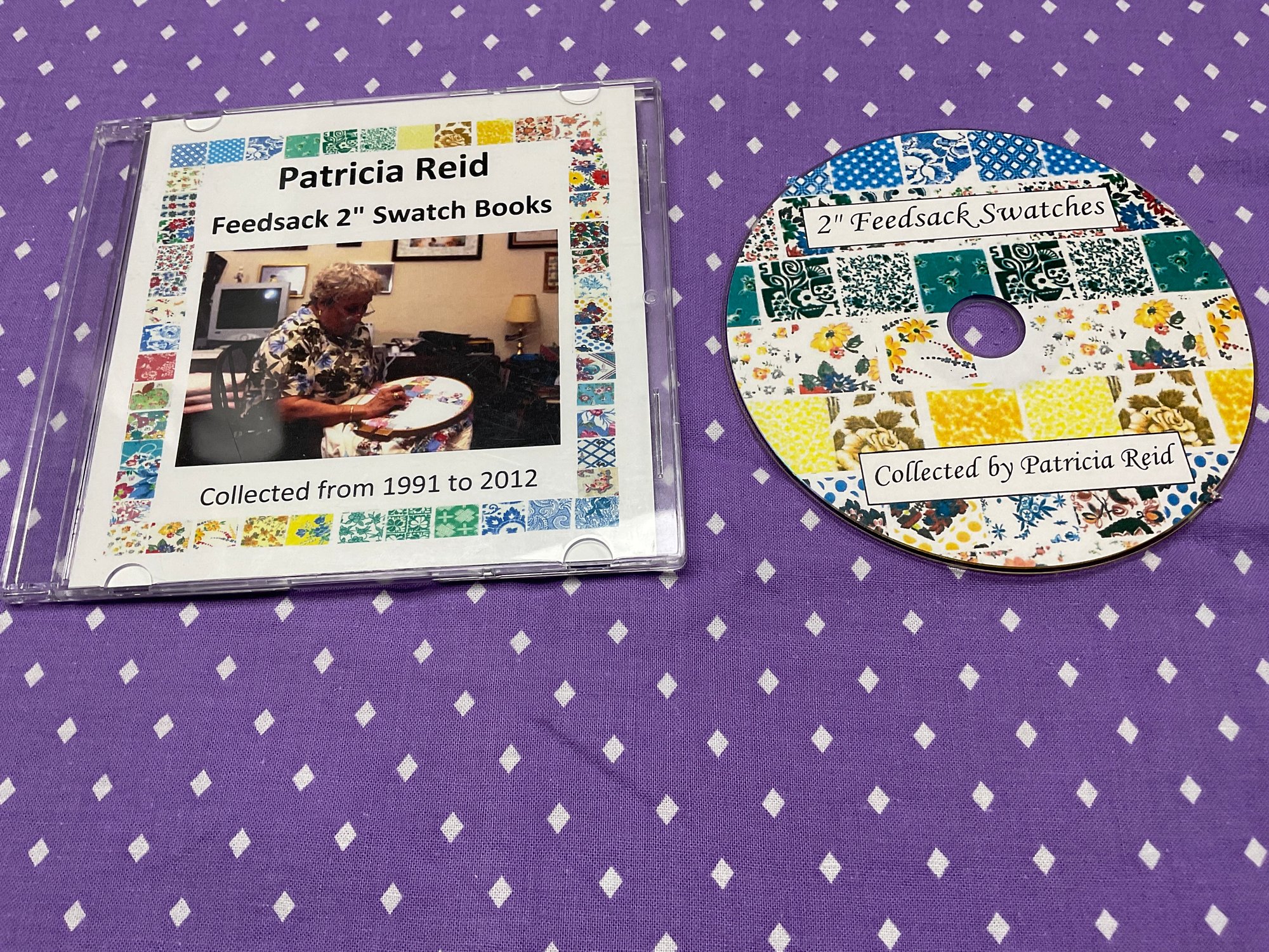 The DVD of Patricia Reid's Feedsack 2" Swatch Books in digital form. This shows the individual pages of swatches and not the four on a page the book does.