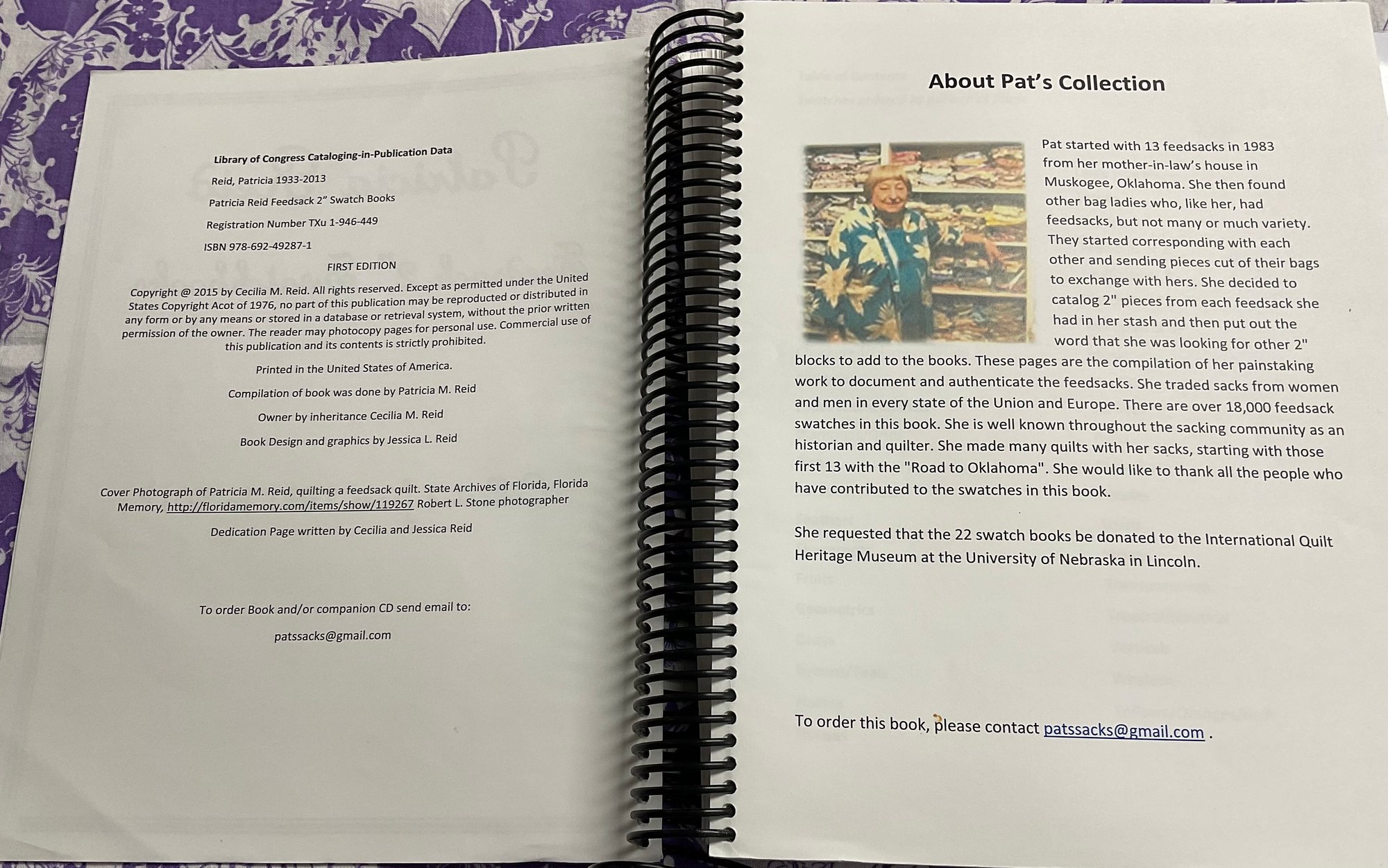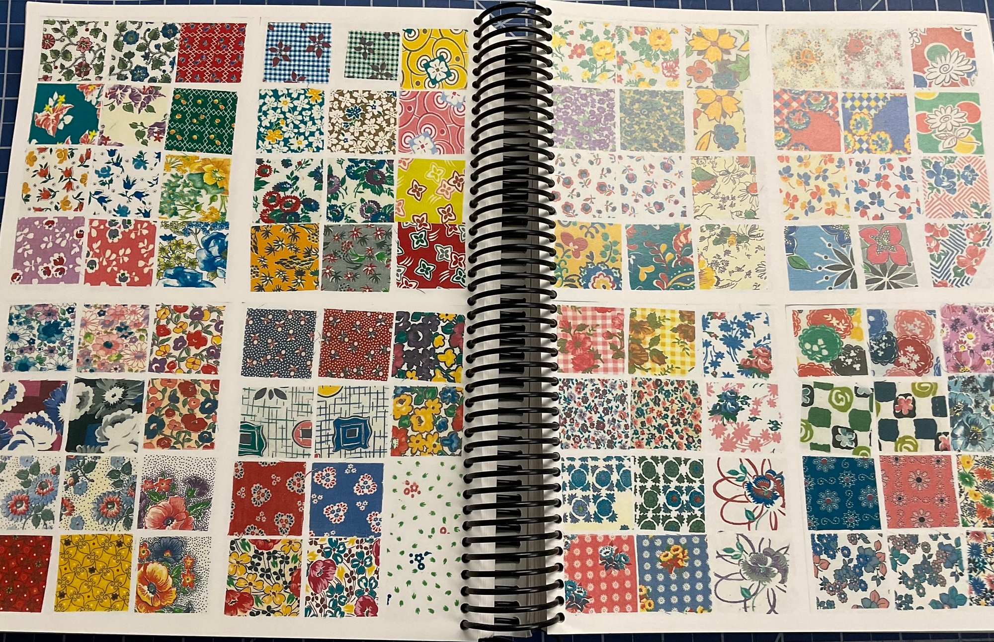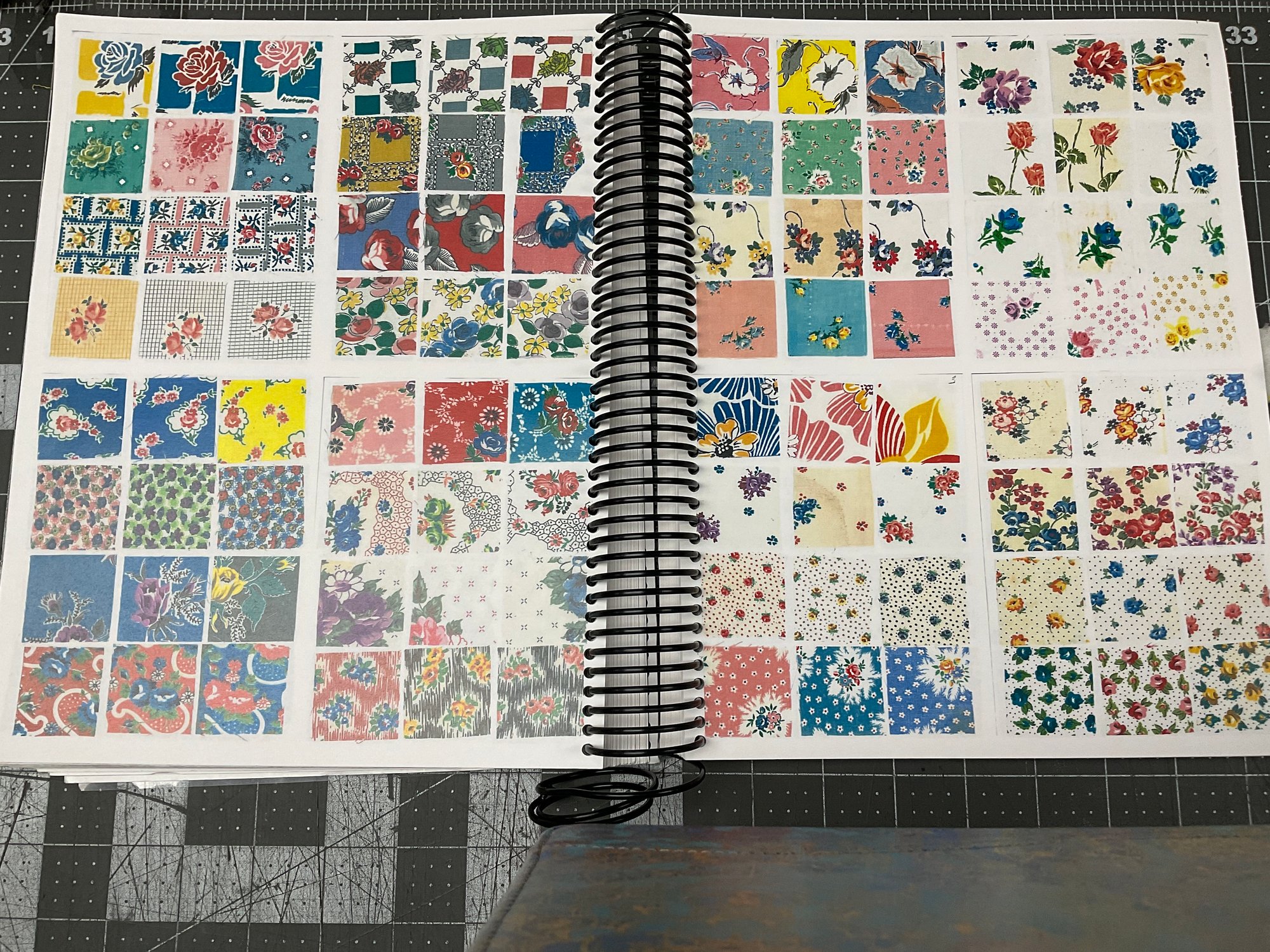 Feedsack Swatches numbering 18,249 2.5" feedsack patterns and or colors. This book is 249 pages double sided in color spiral bound